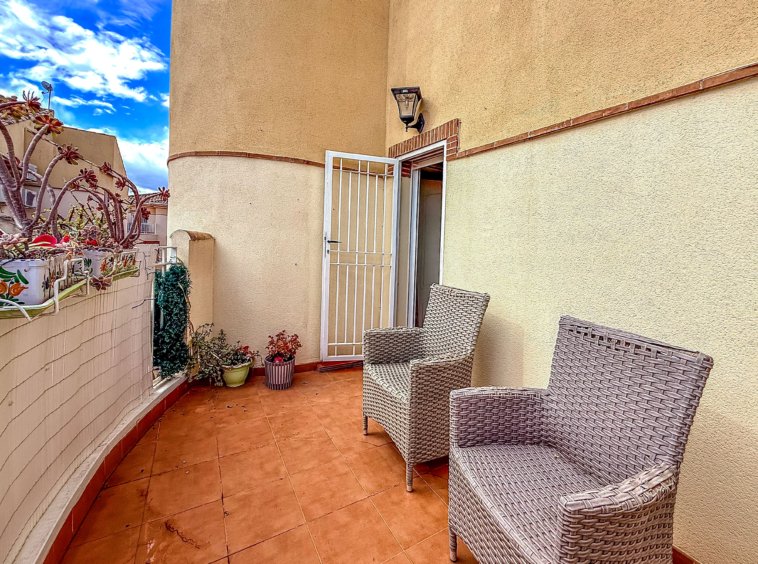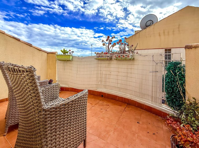 Built in 2006, the property is in good condition and ready to move into, featuring a large private terrace surrounding the home and access to a communal swimming pool within the urbanisation.