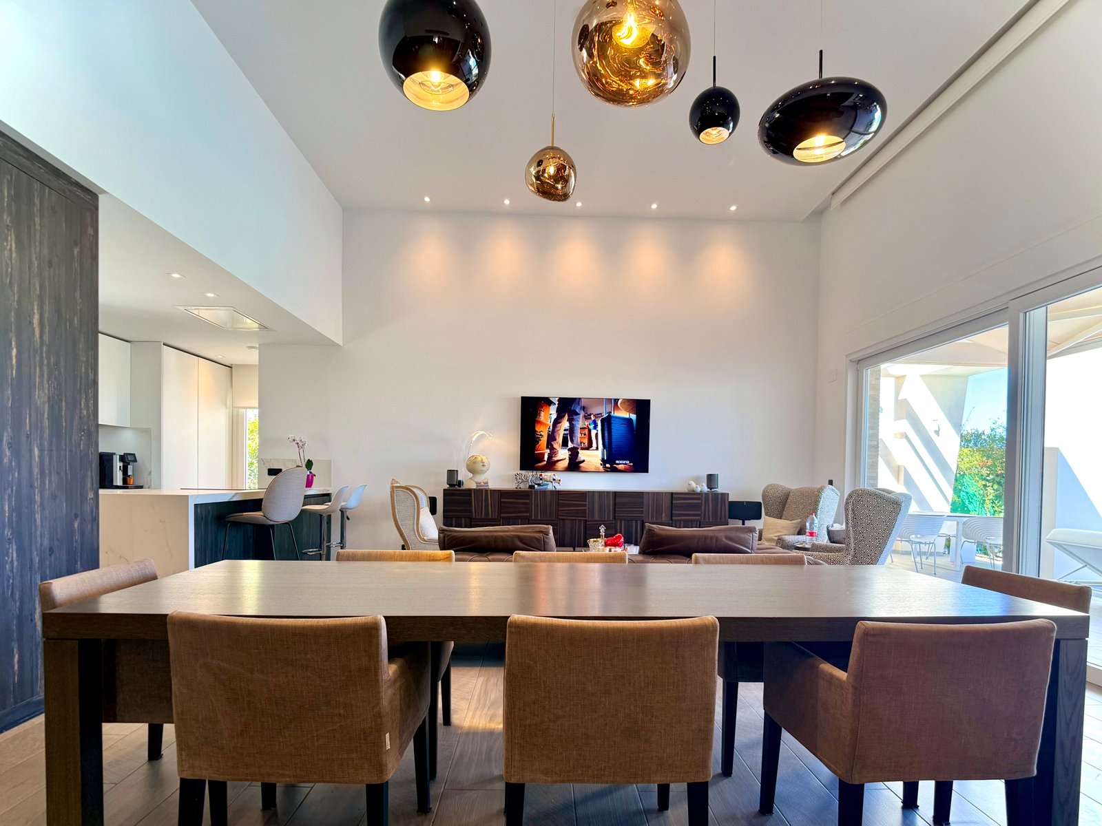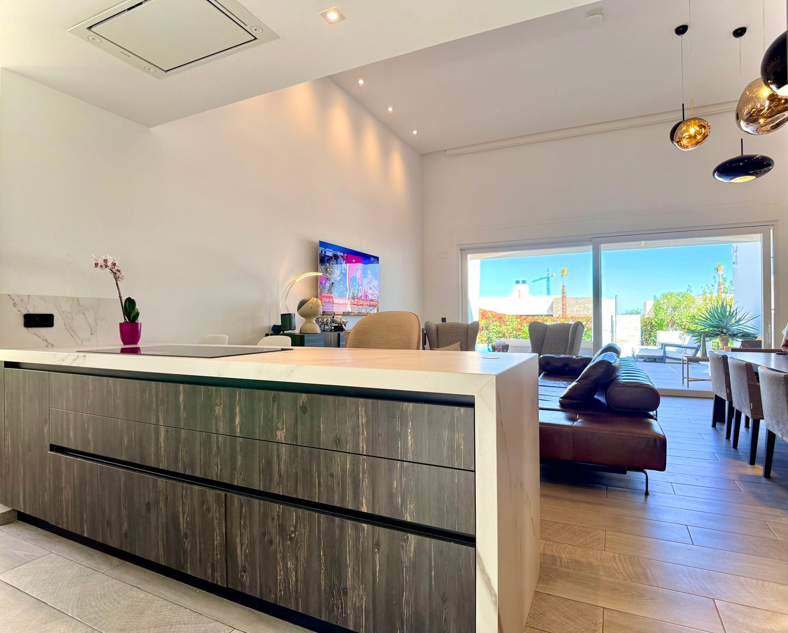 • Open-plan living area with designer kitchen