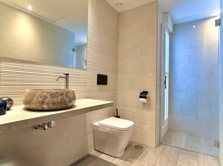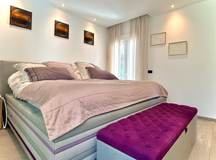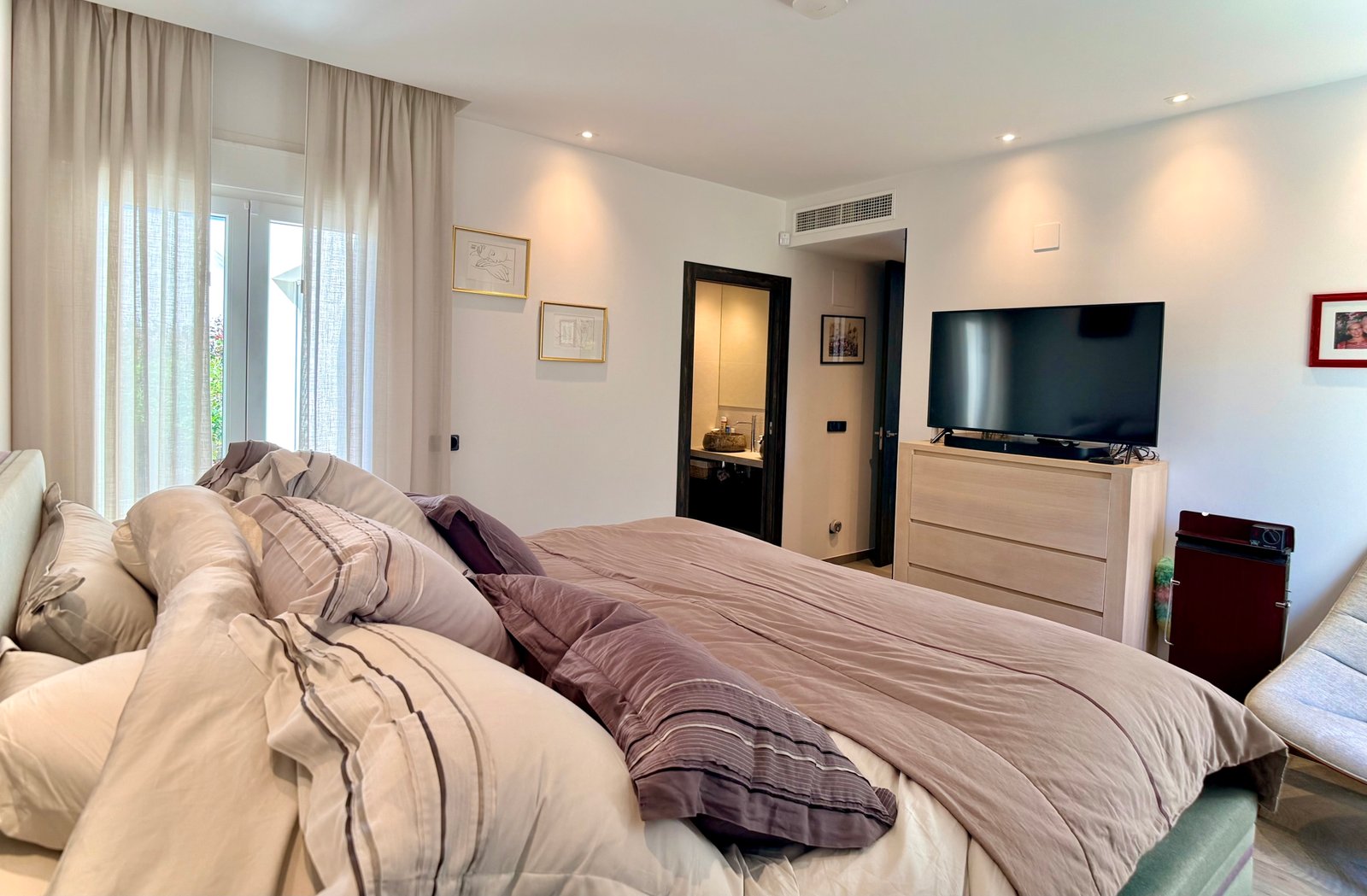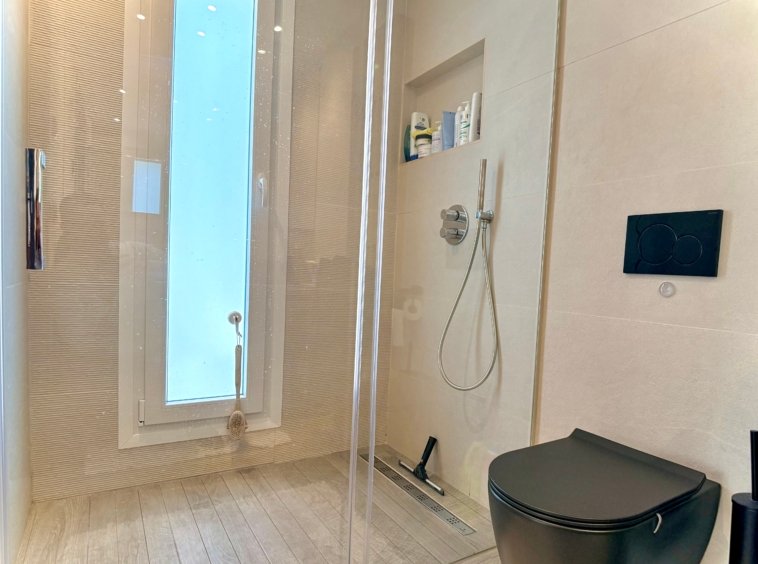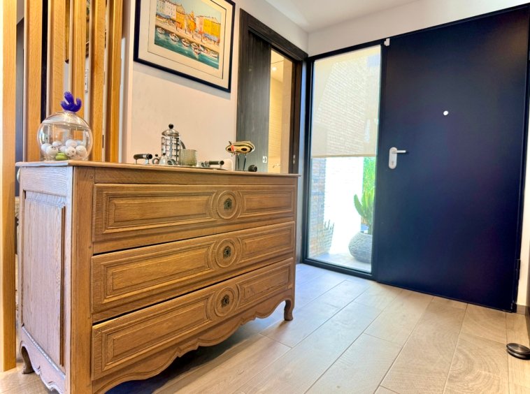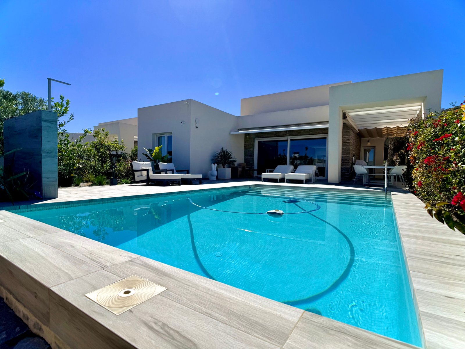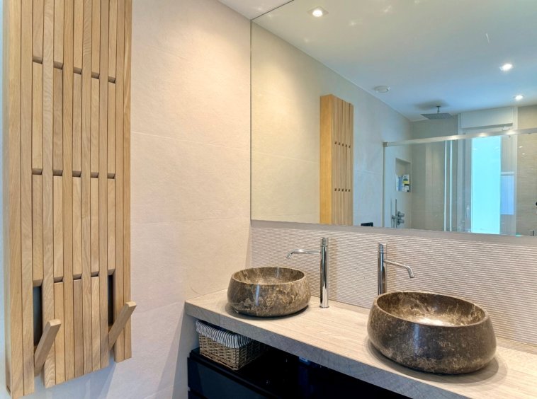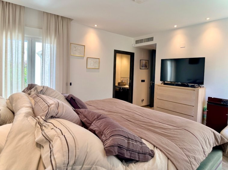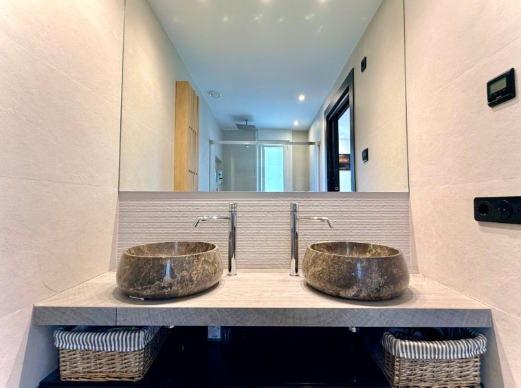 With 132 m² built on one level, the villa is currently configured with 2 spacious bedrooms and 3 bathrooms, prioritising generous interior spaces and maximum comfort.